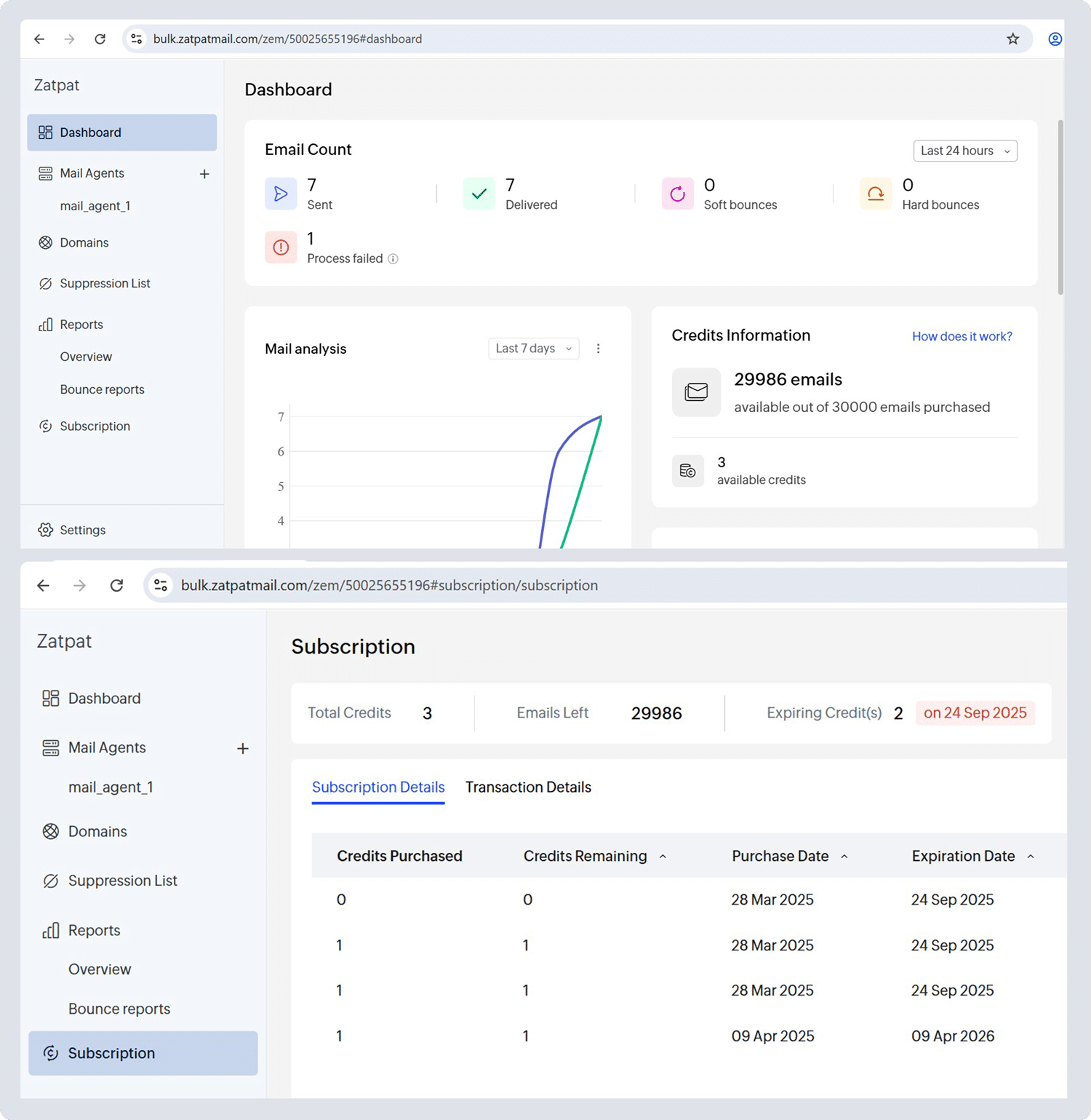 ZatpatMail service is intended strictly for genuine, non-promotional communication like transactional emails, example – password resets, order confirmations, OTPs etc.