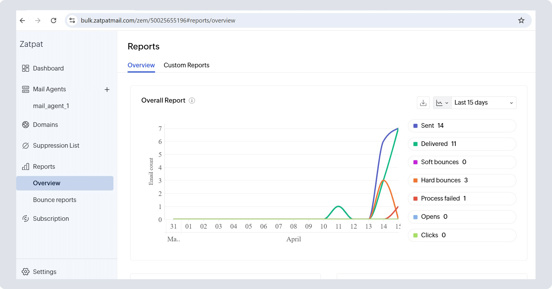In ZatpatMail’s reports section, you can get an overview of your email status, bounce categories, and in-depth analytics on browsers, devices, OS, and email clients.